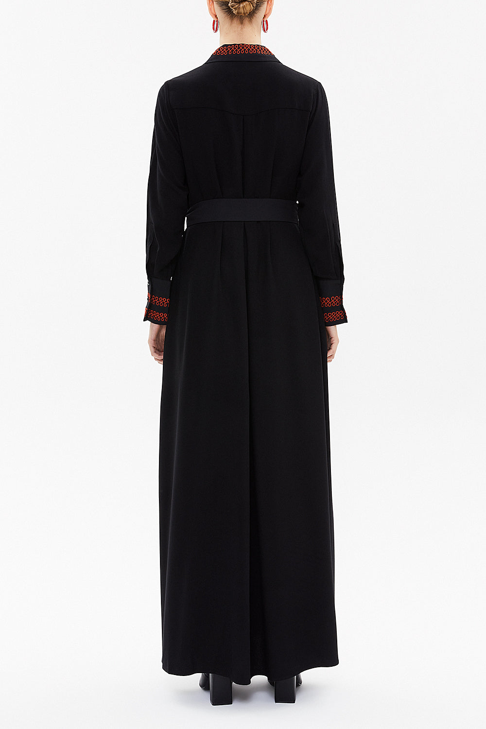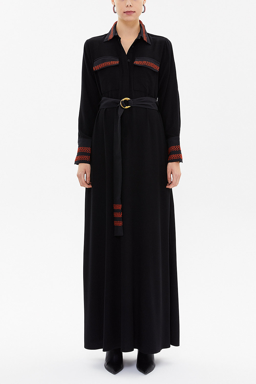 Siyah Kırmızı Kuşaklı cepli uzun elbise 92588