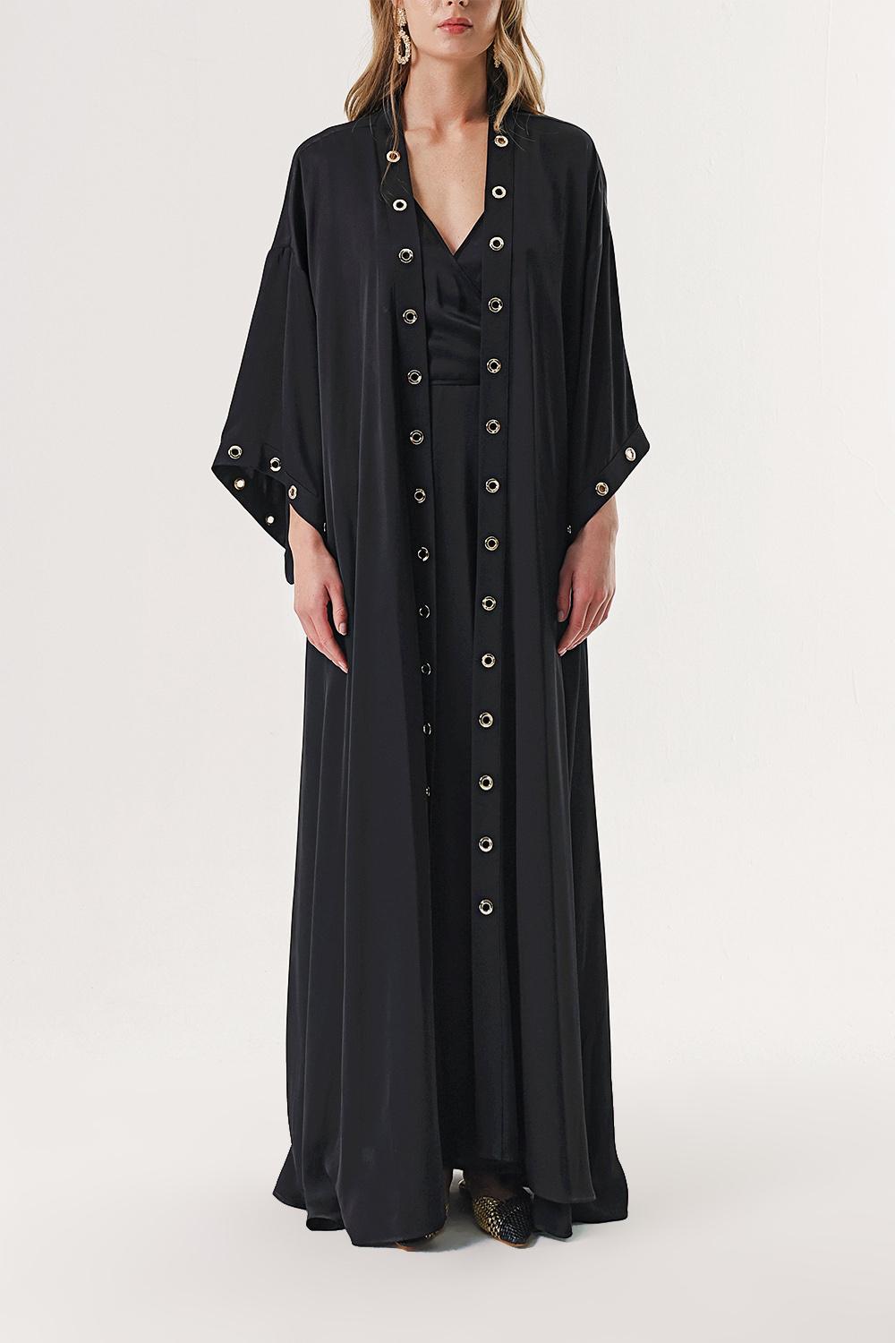 Siyah Kuşgözü detaylı içlikli uzun kaftan 94187