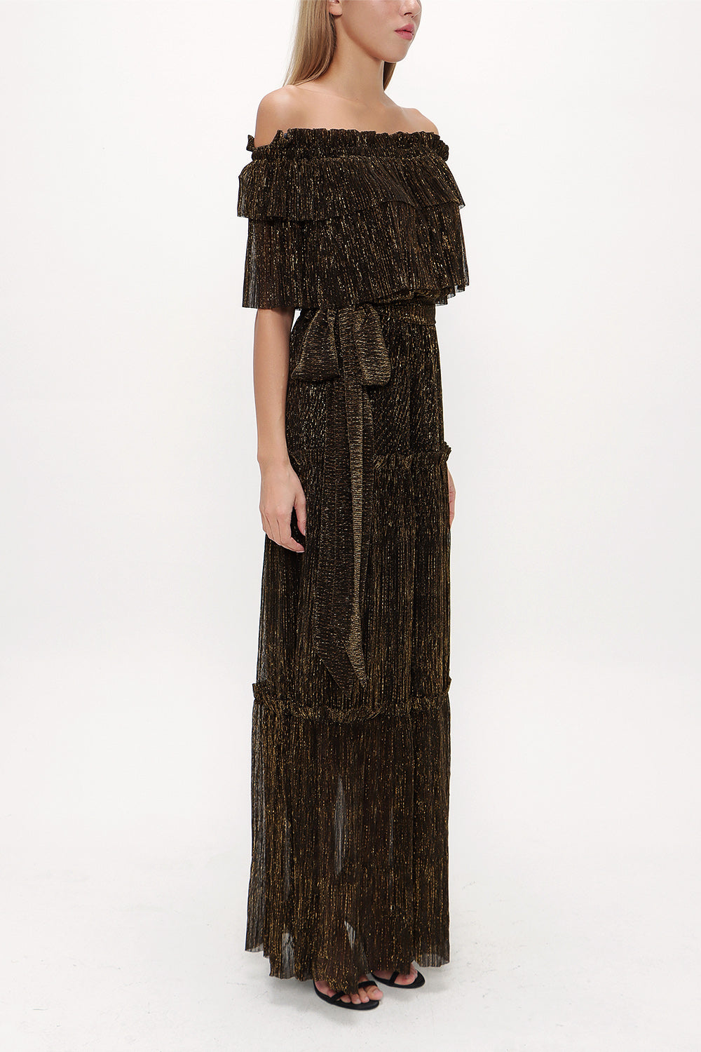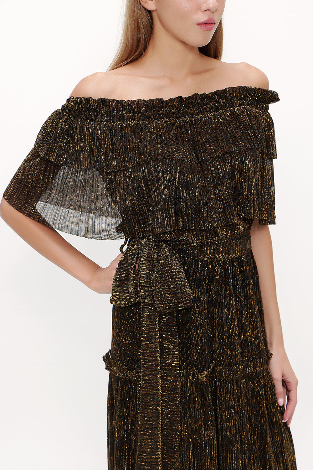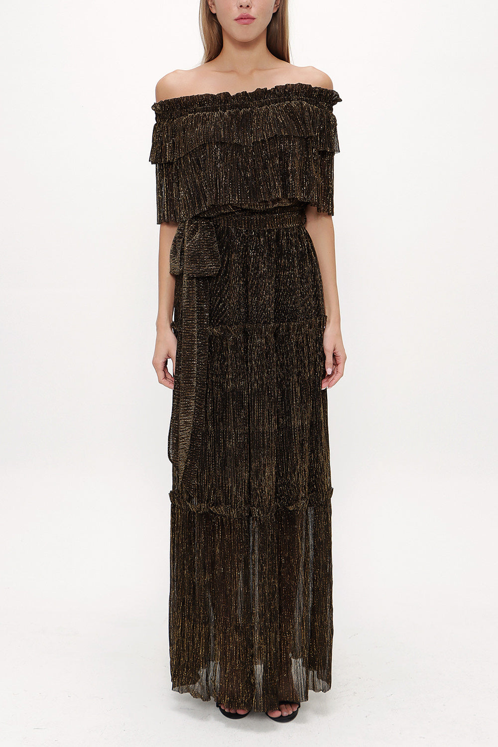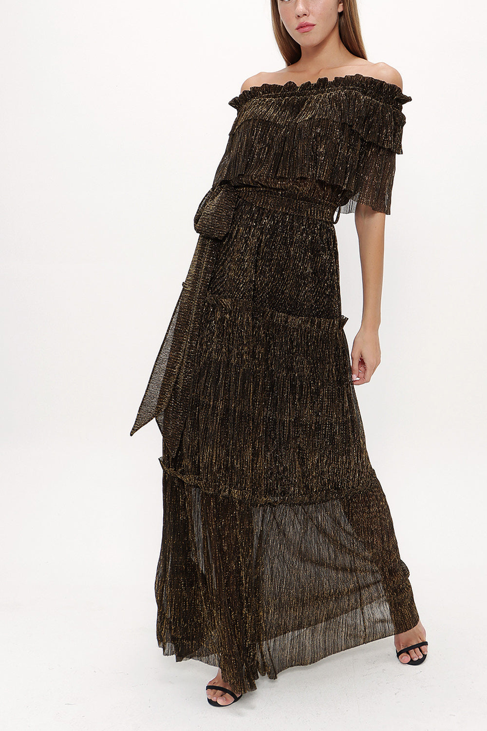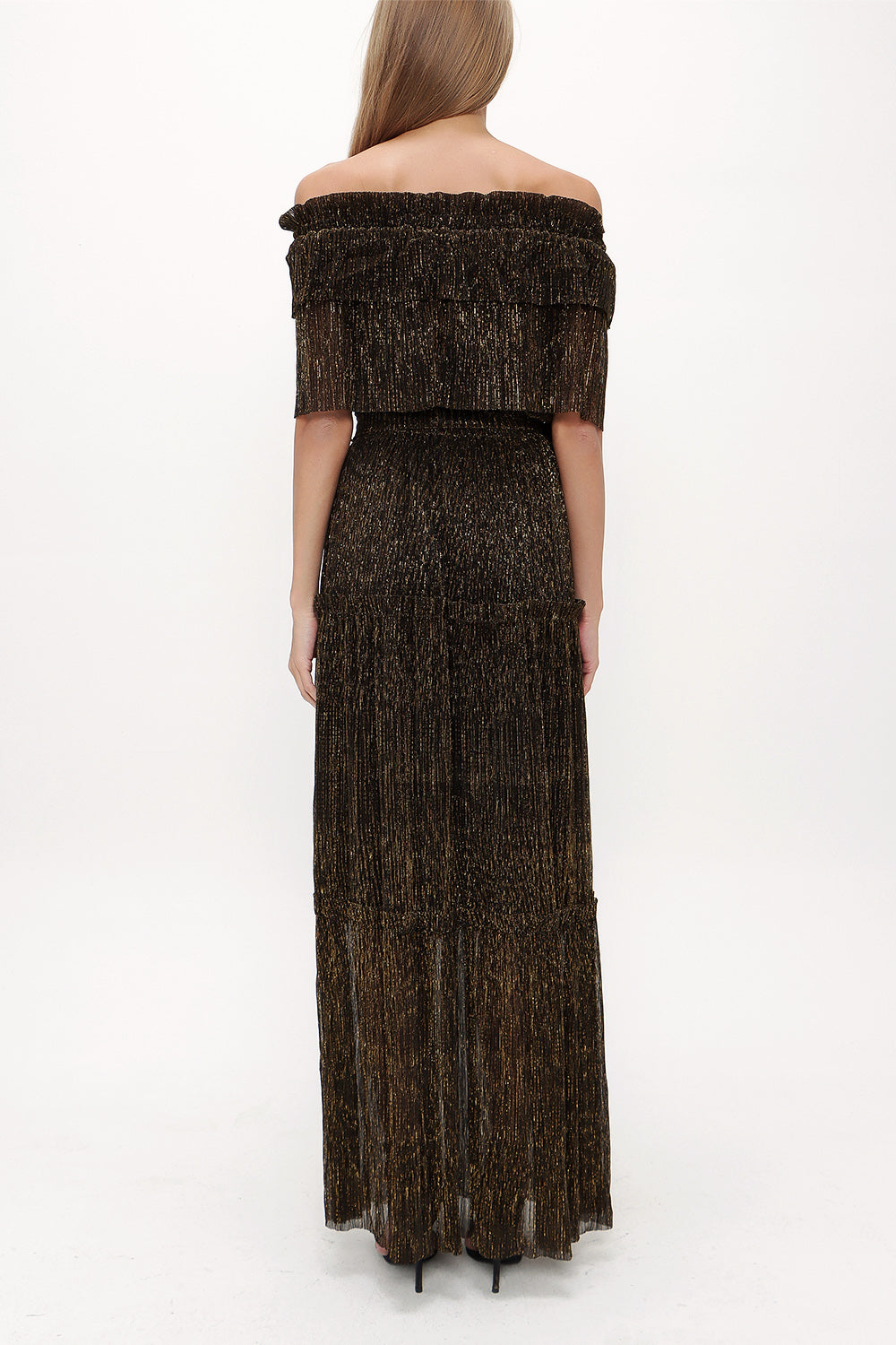 Siyah Lastik detaylı düşük omuz elbise 92449