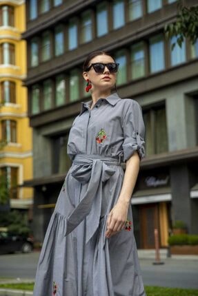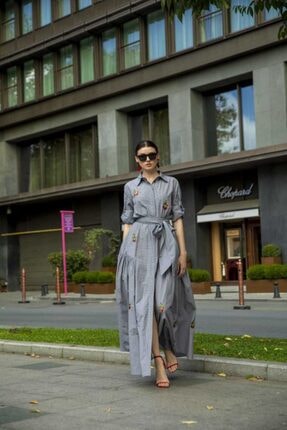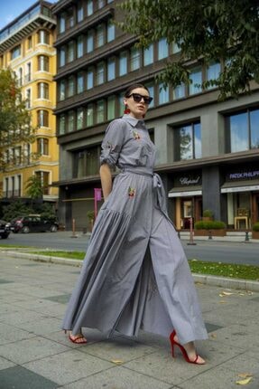 Siyah Nakışlı uzun elbise 92866