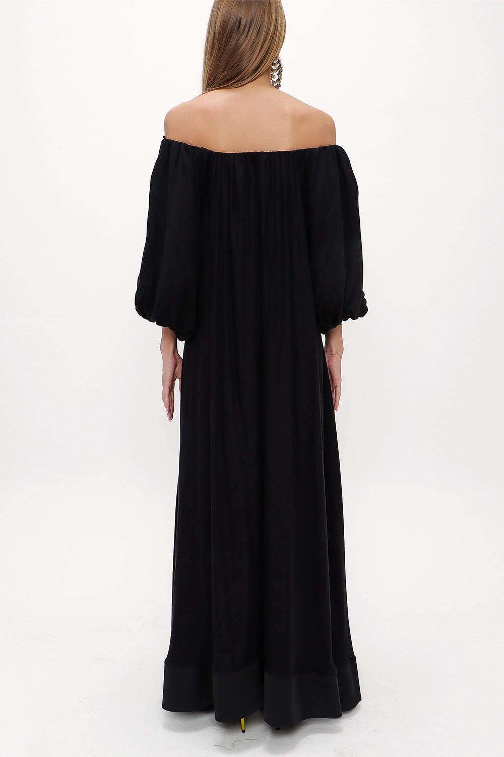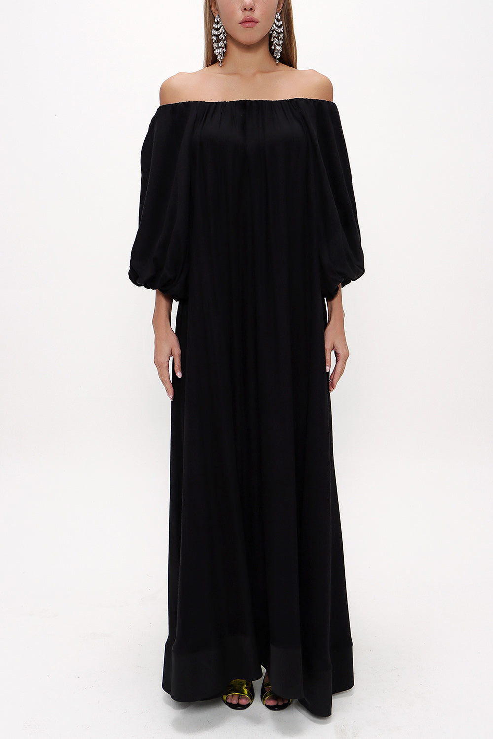Siyah Omuzu büzgülü bol kesim elbise 93462