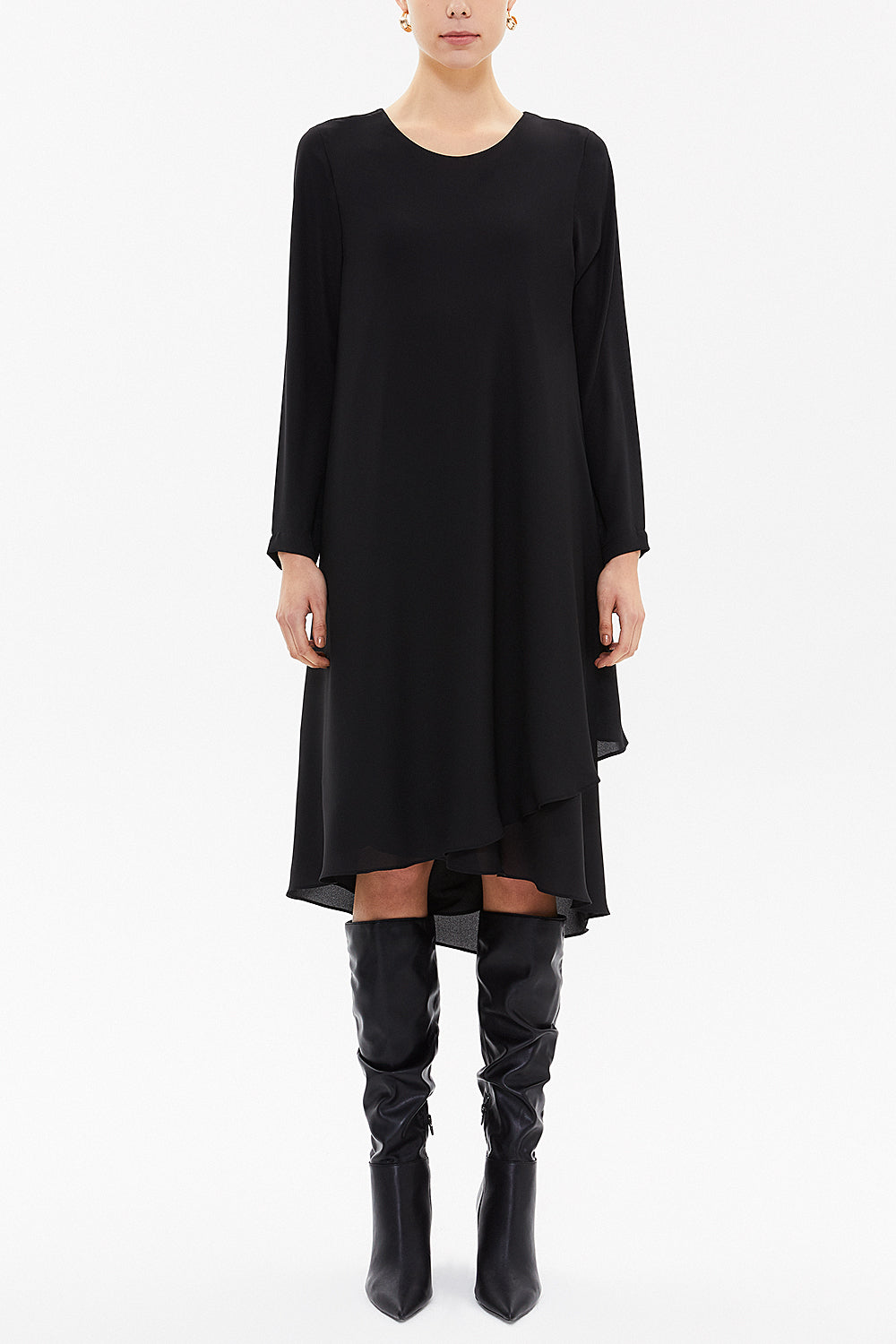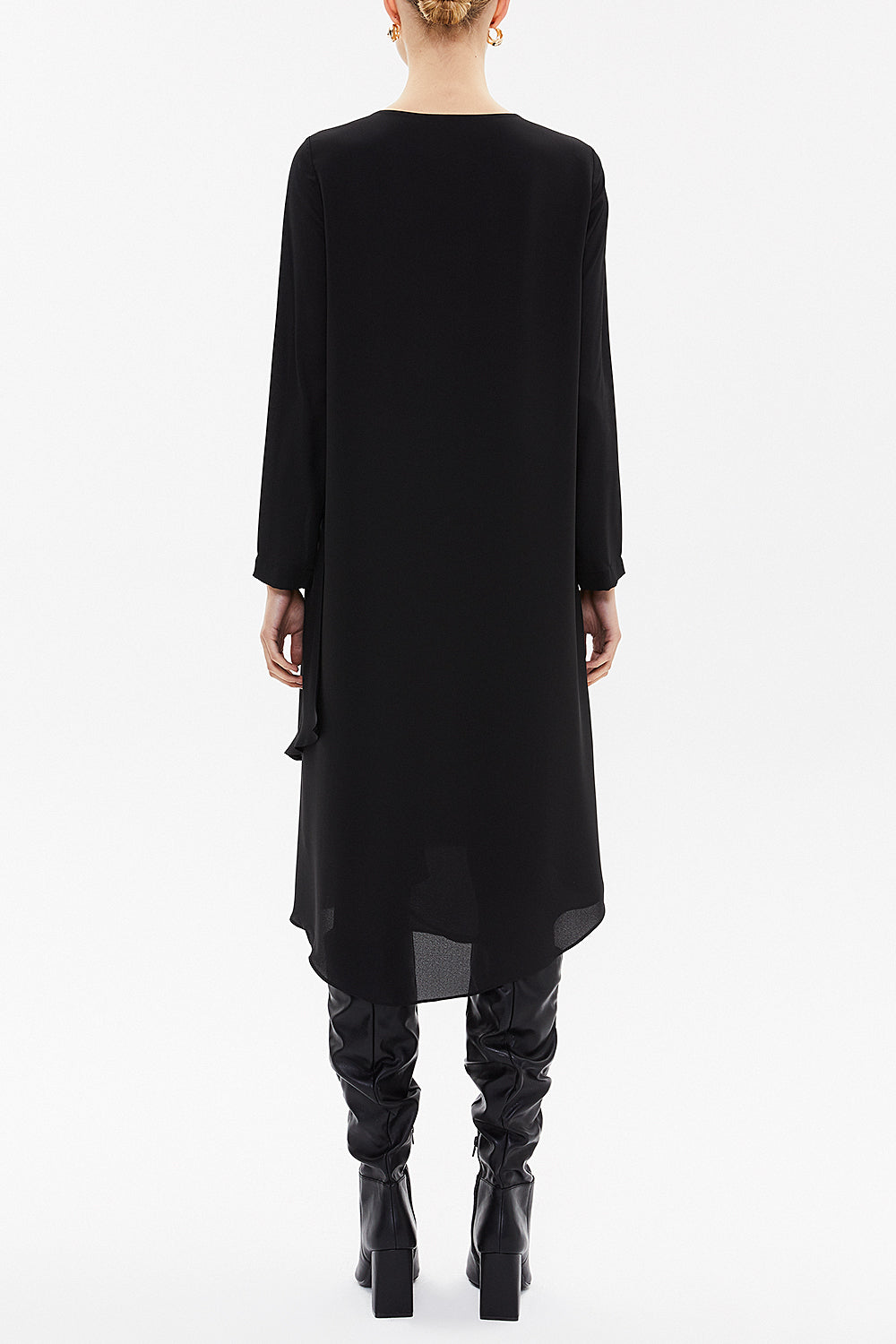 Siyah Siyah Asimetrik kesim şifon midi elbise 92549