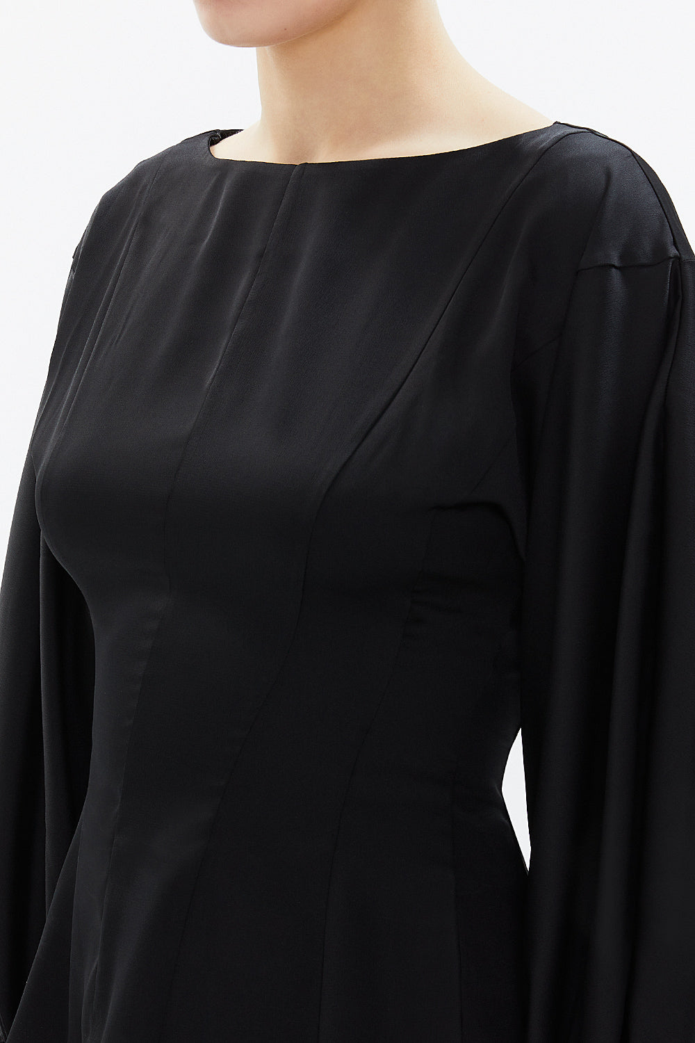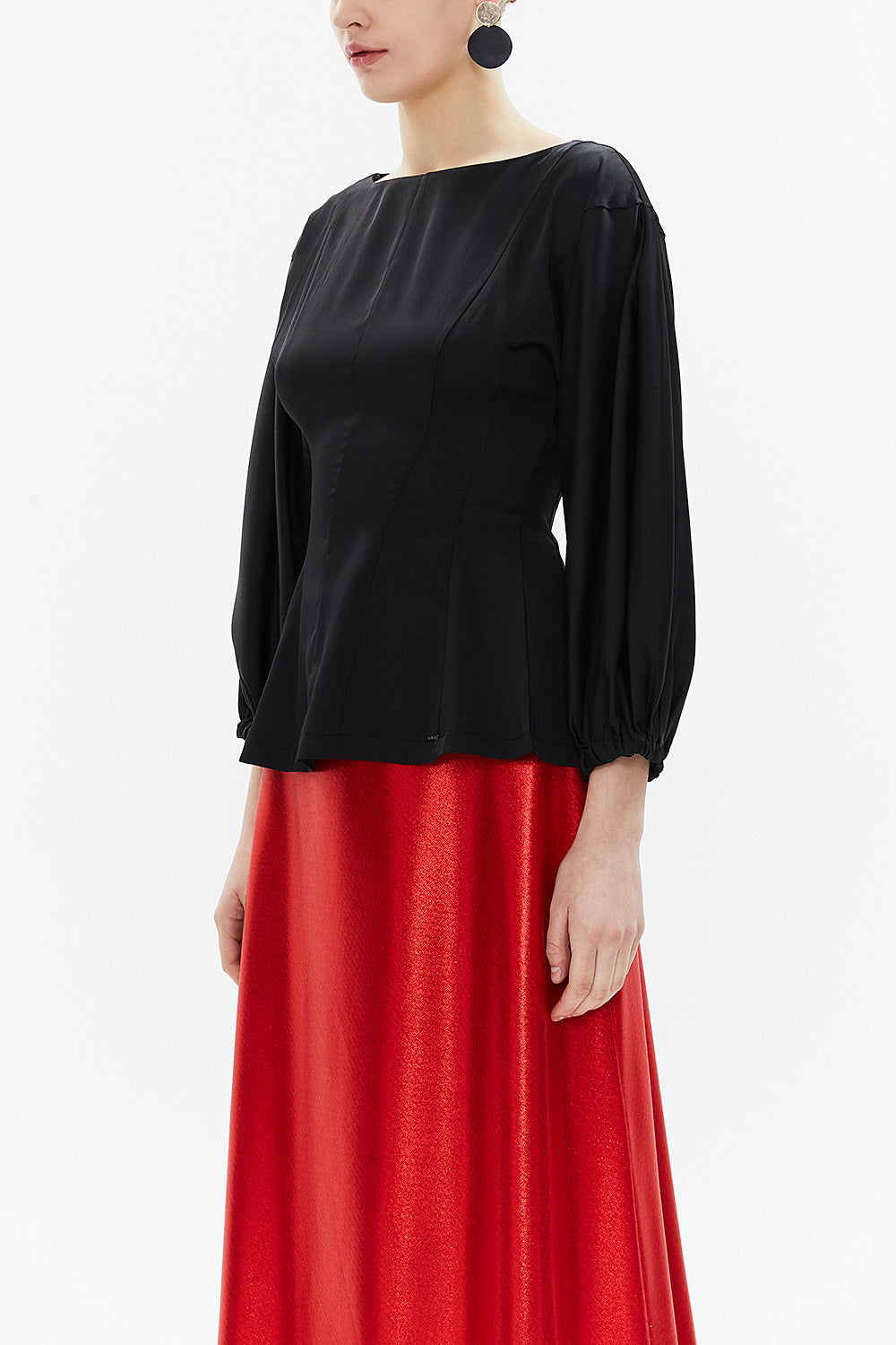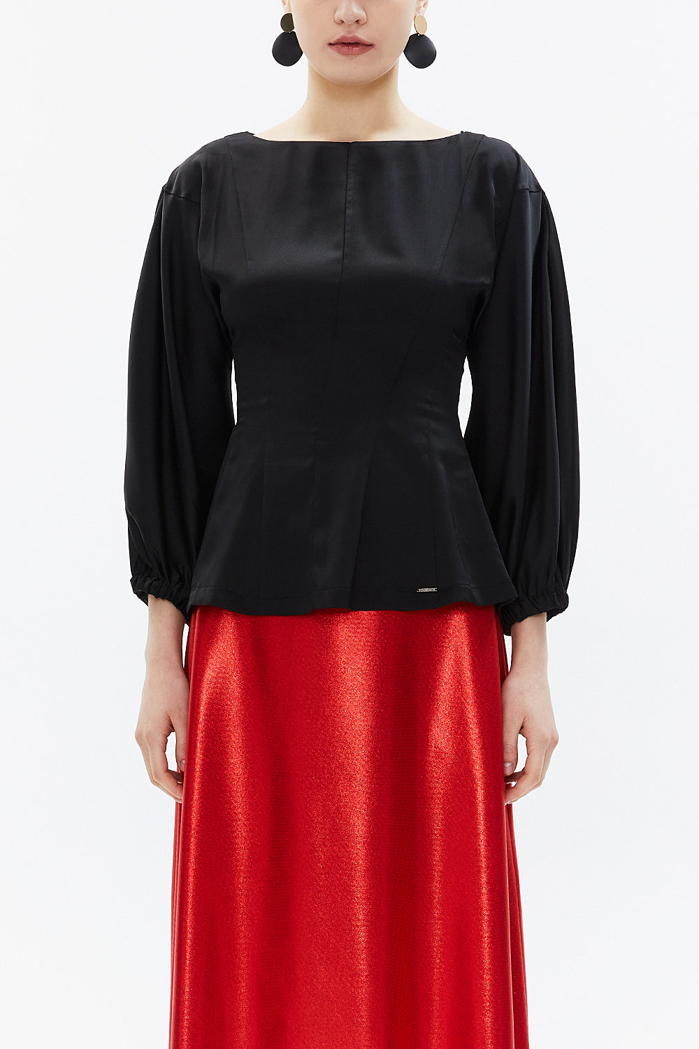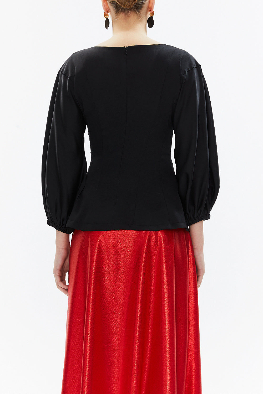 Siyah Siyah Balon kol beli oturtmalı bluz 19810