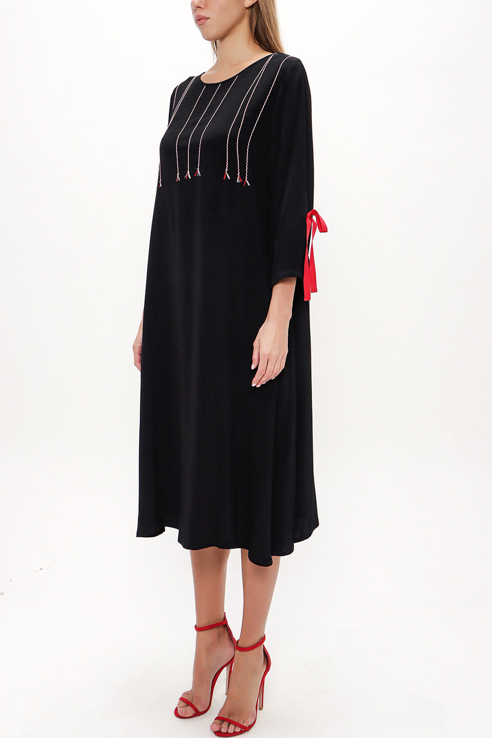 Siyah Süs dikişli bol kesim midi elbise 92280