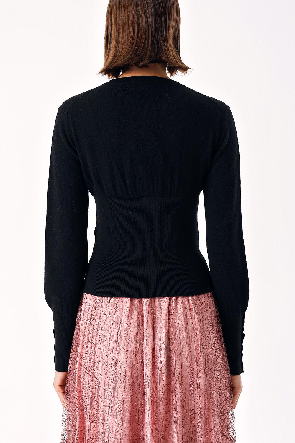 Siyah Beli oturan ribanalı kısa örme hırka 28840