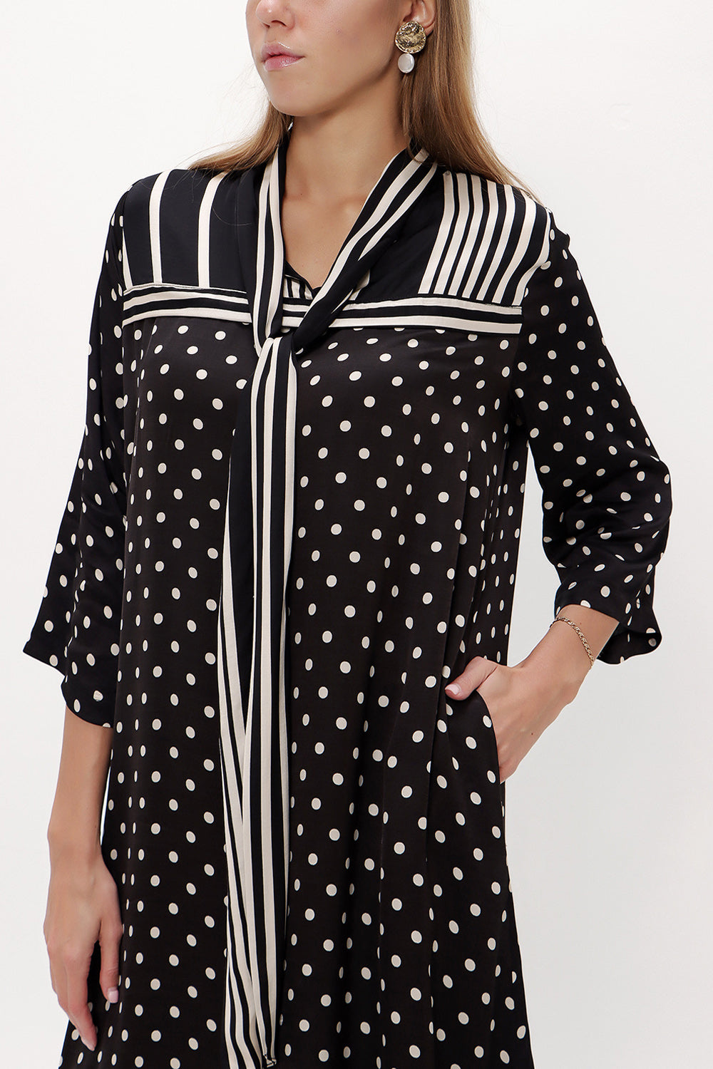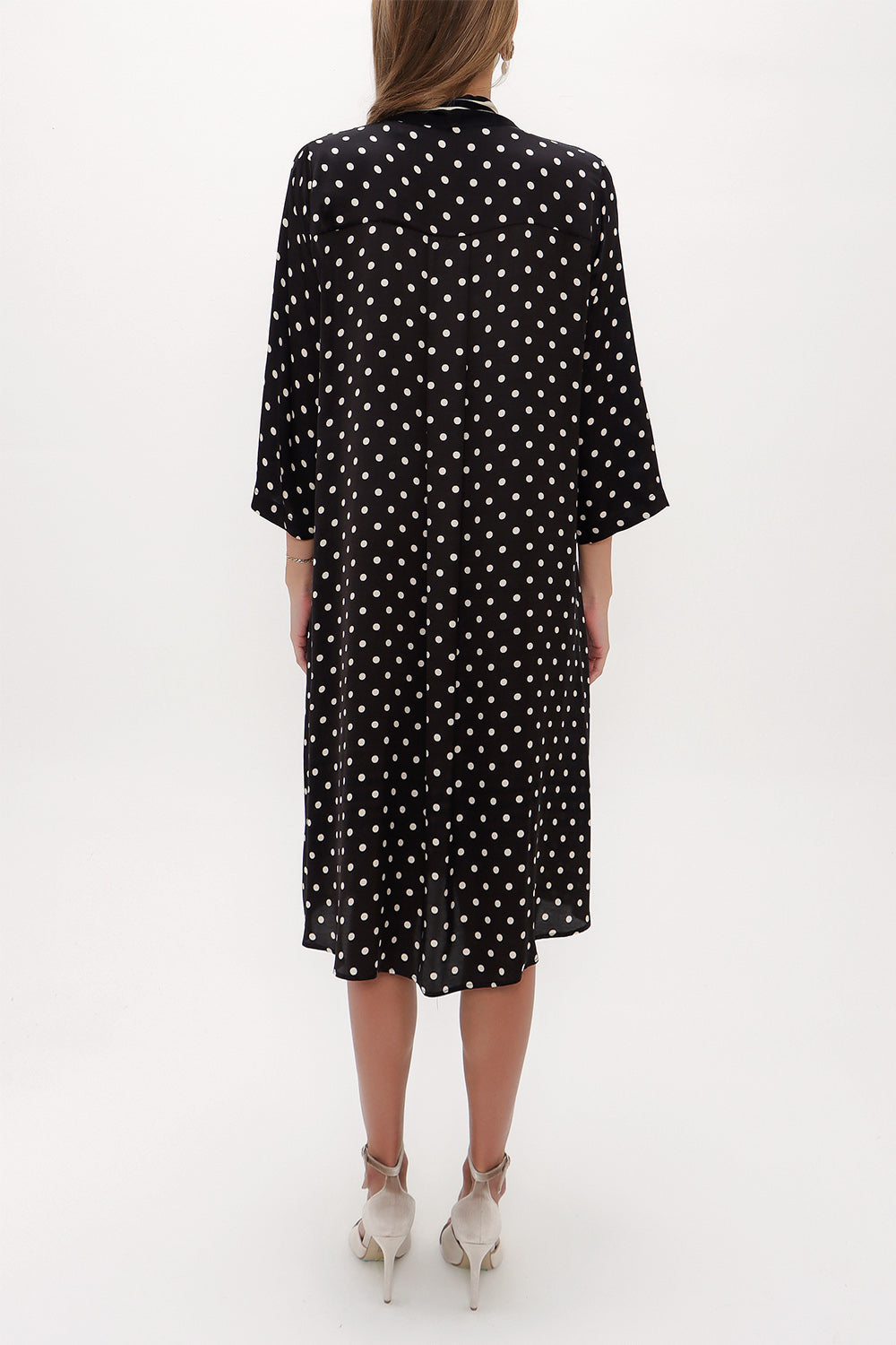 Siyah Yakası bağcıklı bol kesim midi elbise 92816