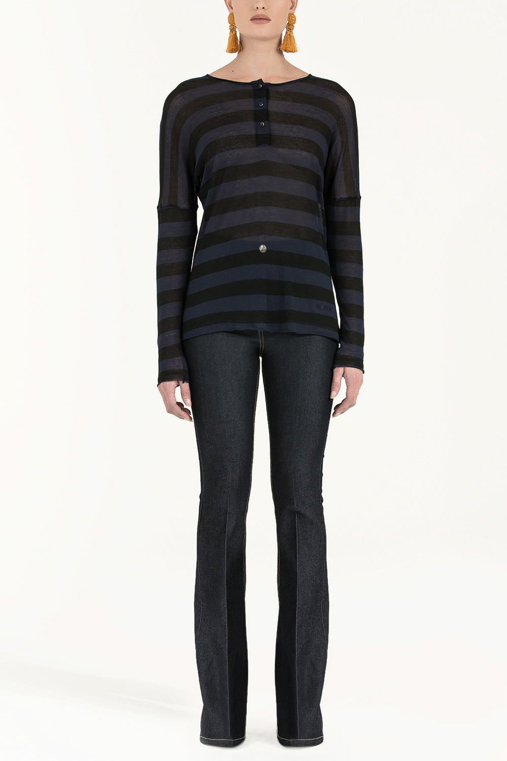Siyah Yakası düğmeli bol kesim örme bluz 19269