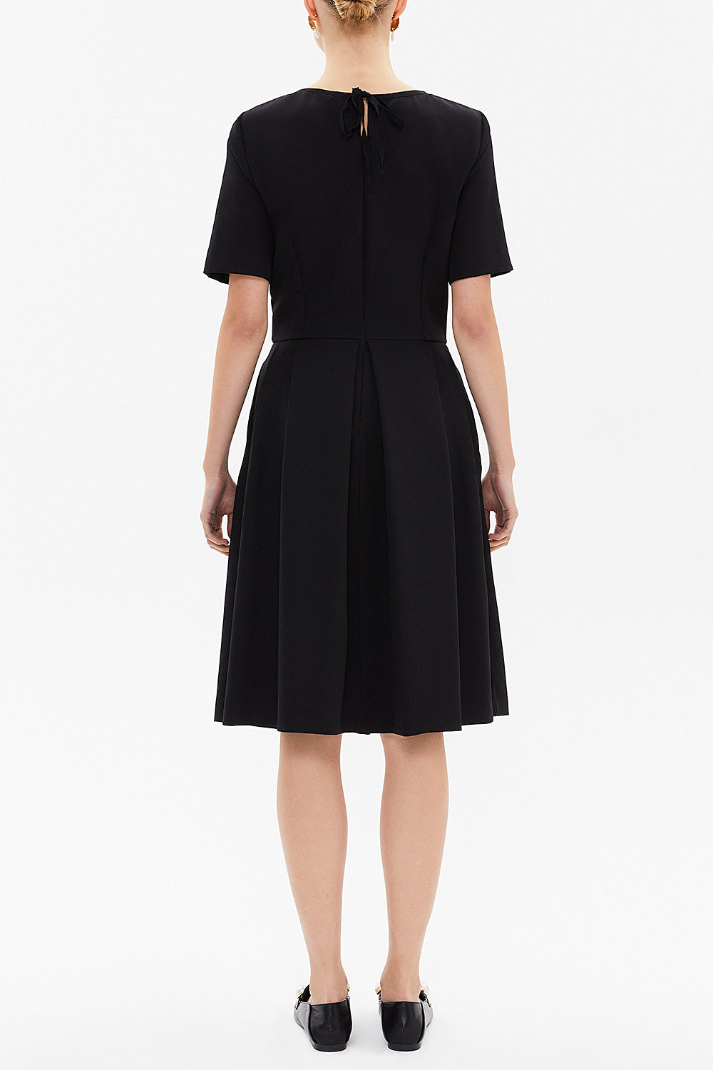 Siyah Yakası inci detaylı pilili midi elbise 92207