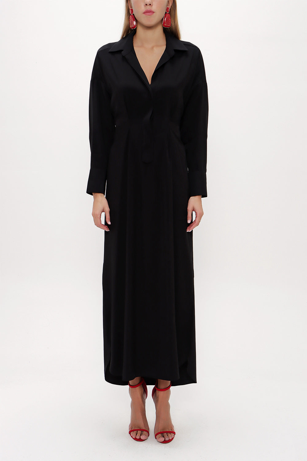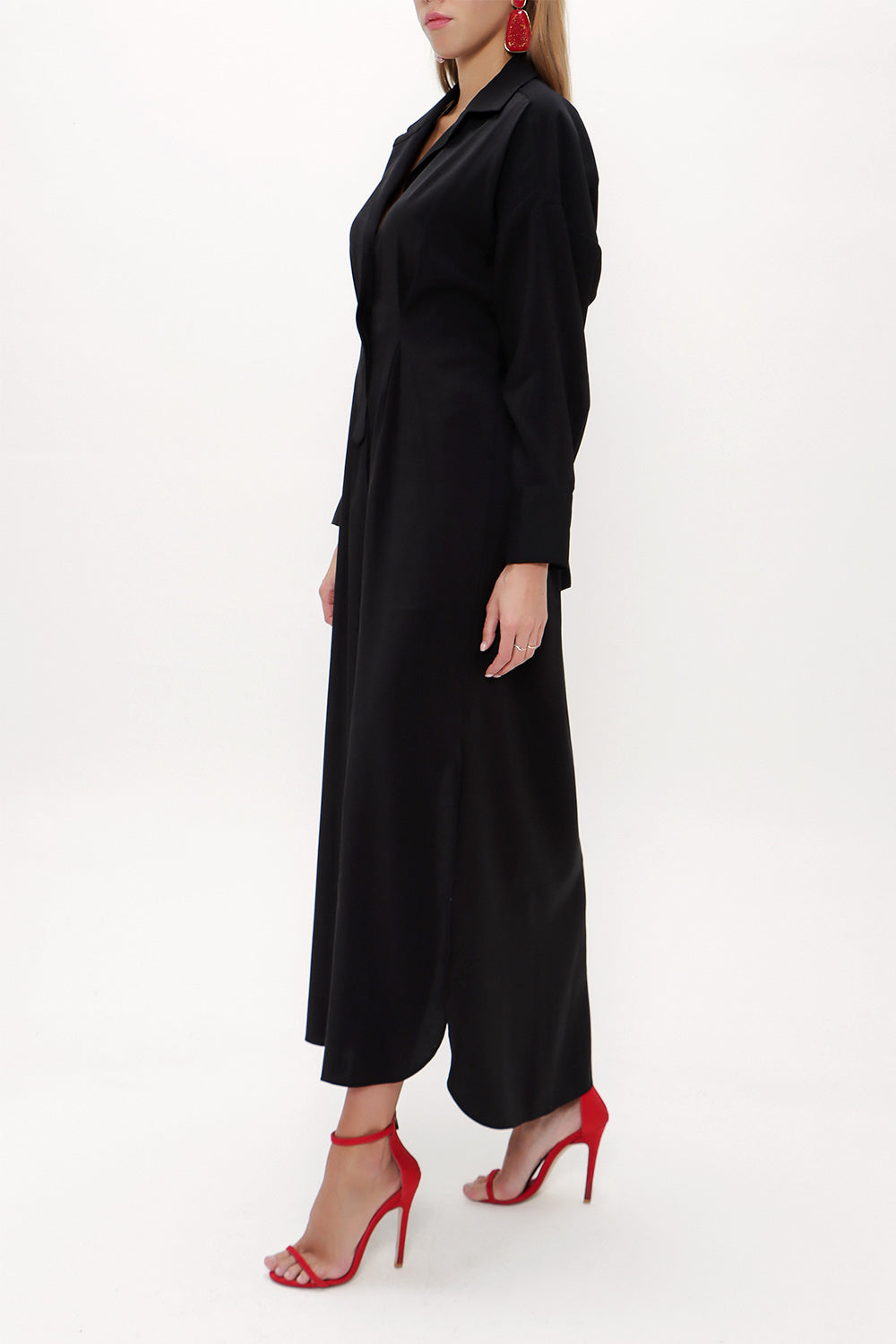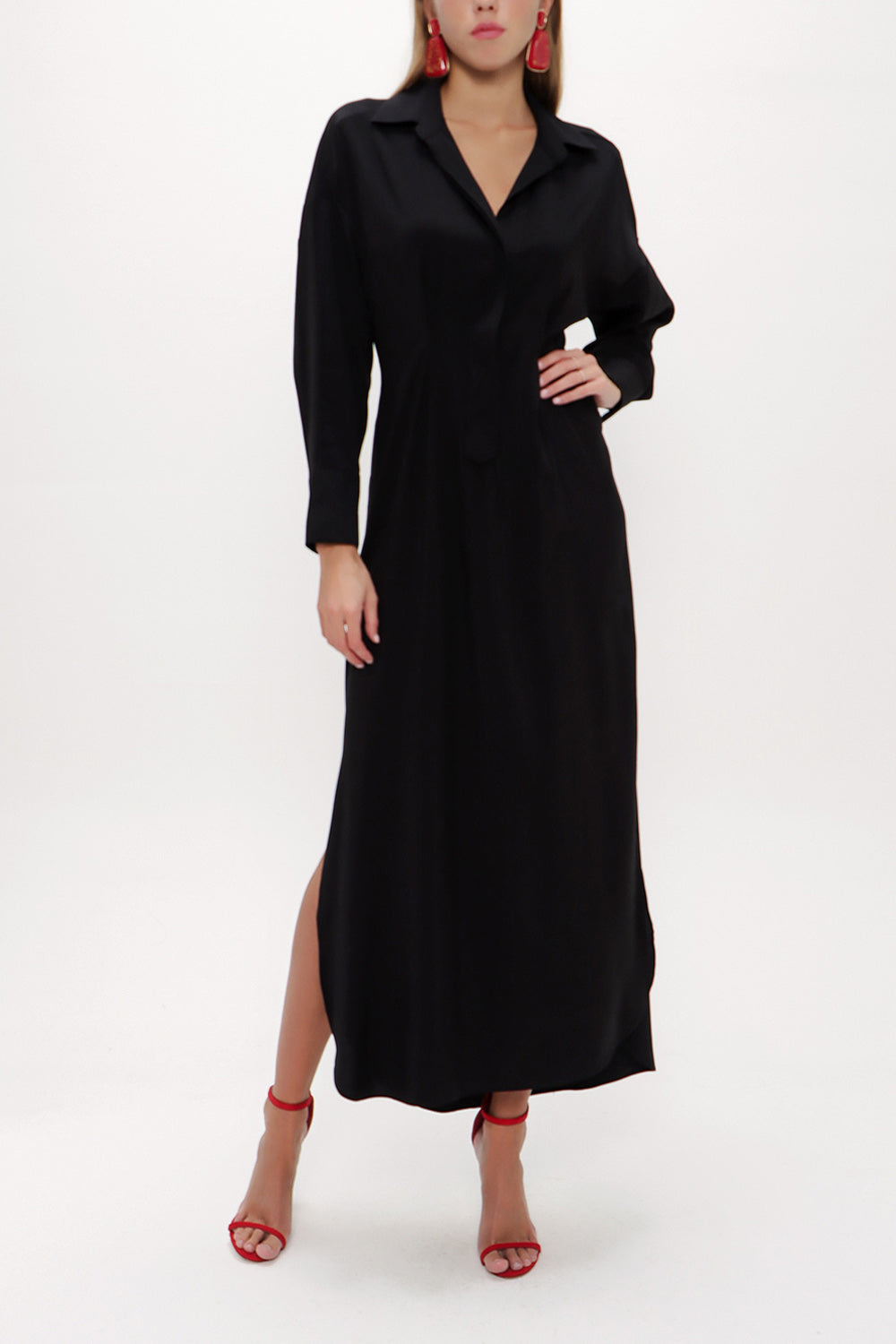 Siyah Yırtmaç detaylı uzun elbise 92873