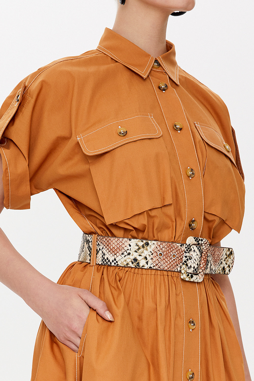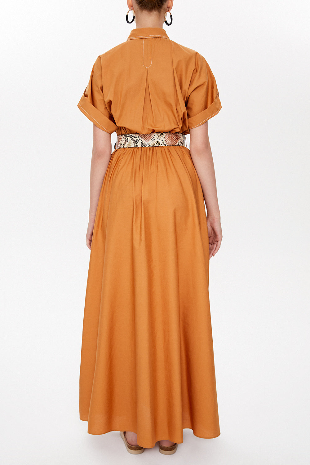 Tarçın Cepli beli lastikli uzun elbise 93098