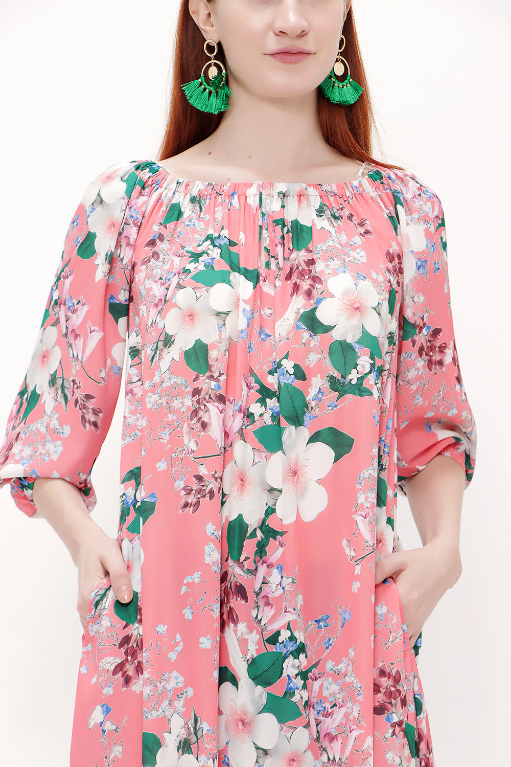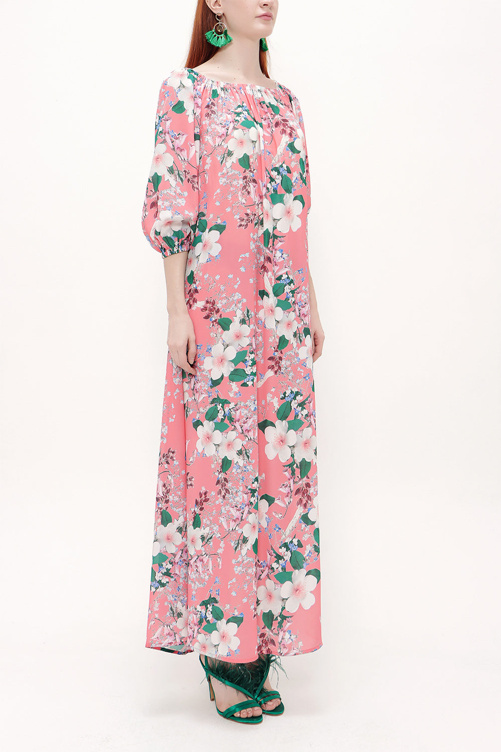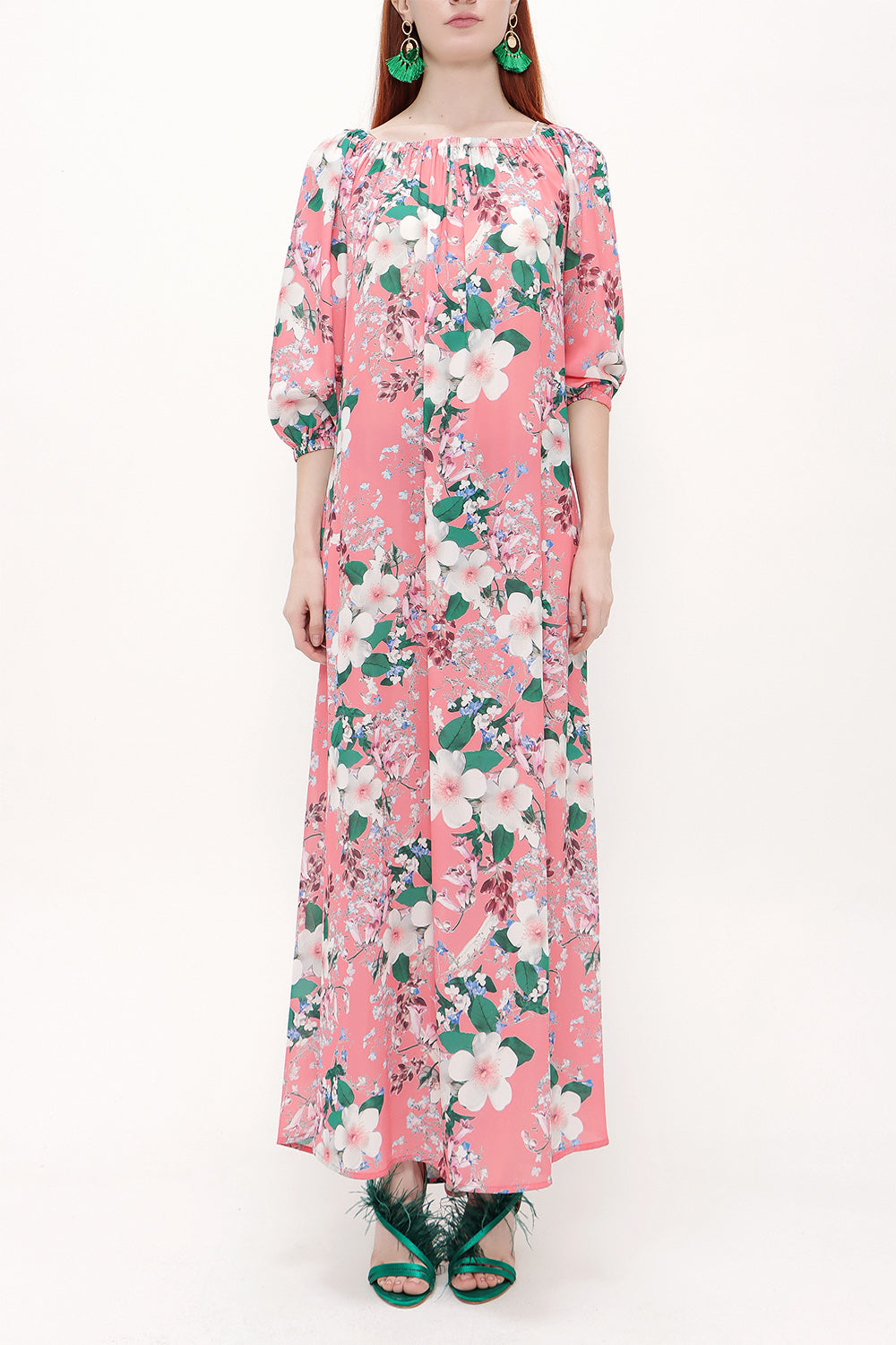 Turuncu Yıldız nakışlı uzun elbise 92242