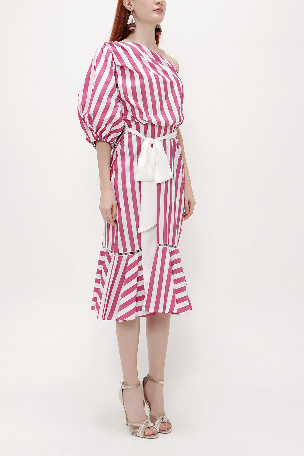 Vişne Tek omuz godeli midi elbise 92802