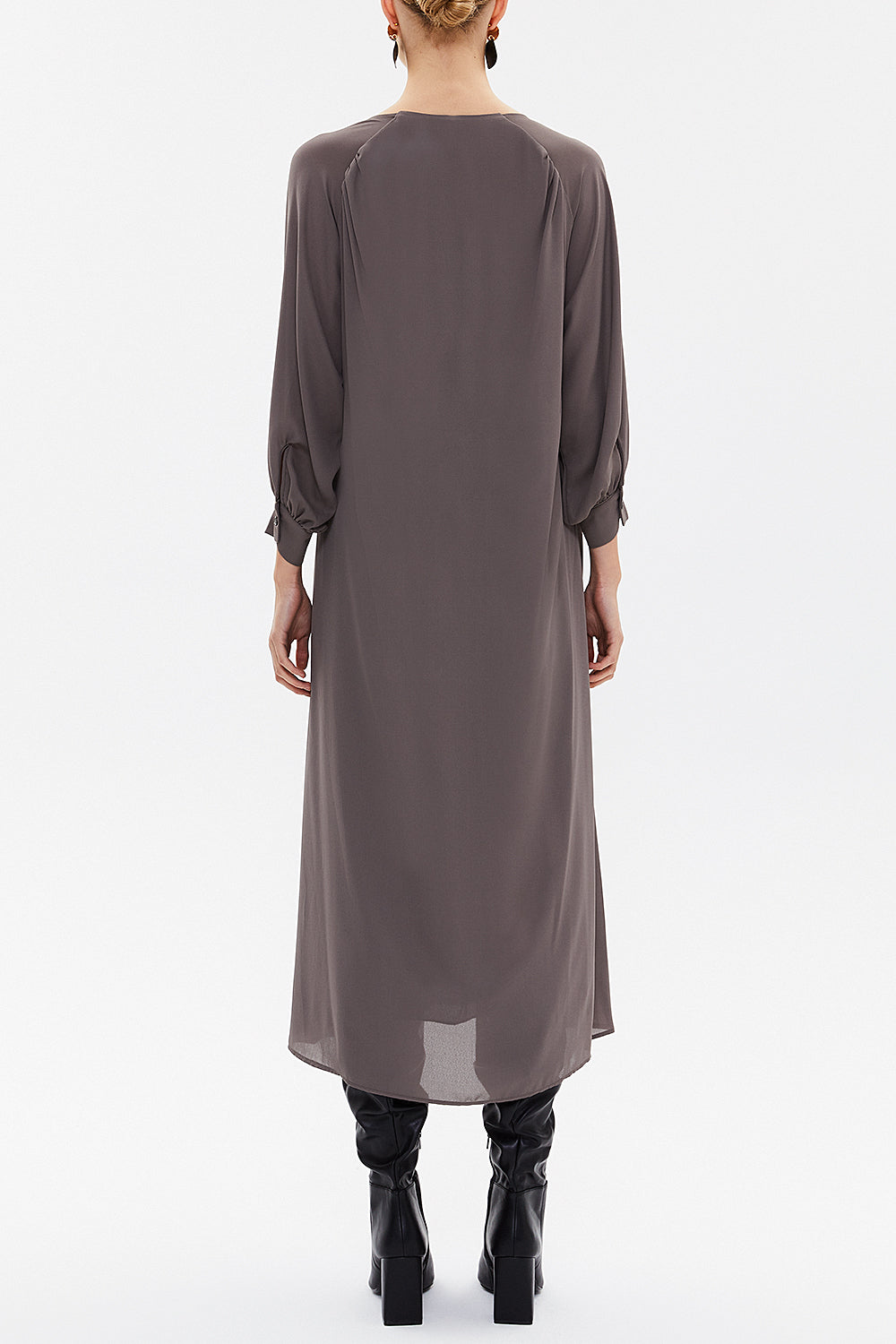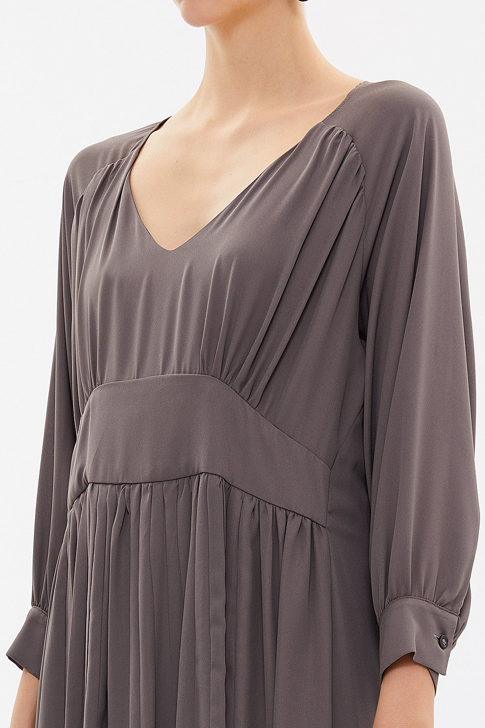 Vizon V yaka büzgülü bol kesim midi elbise 92479