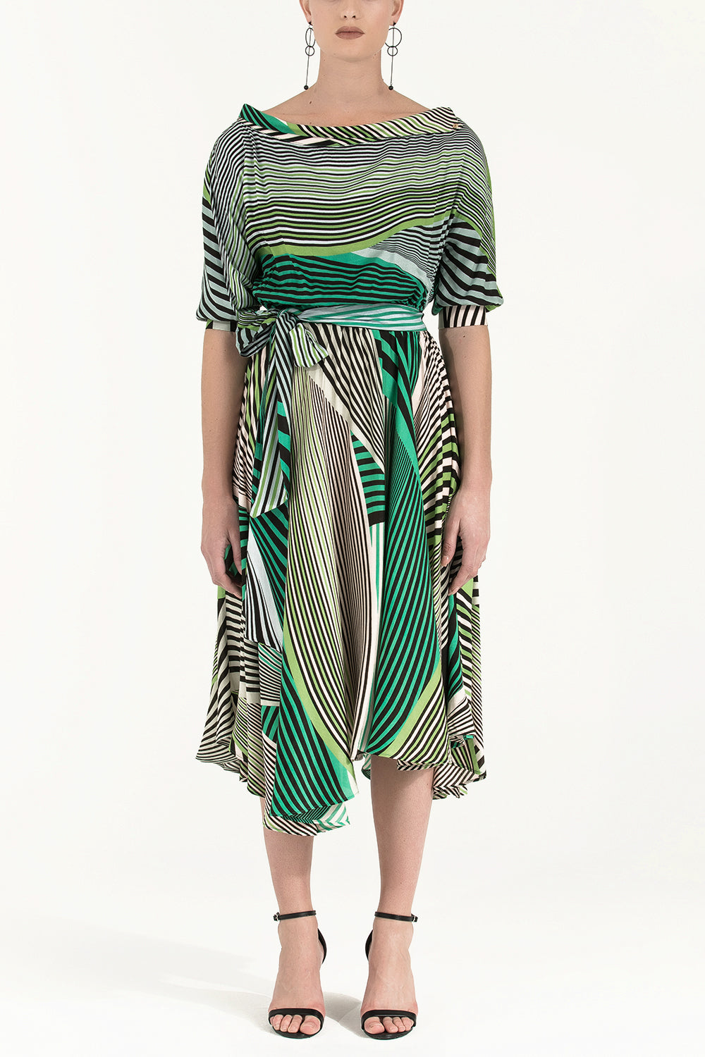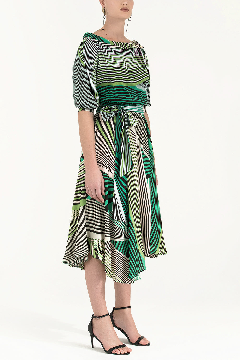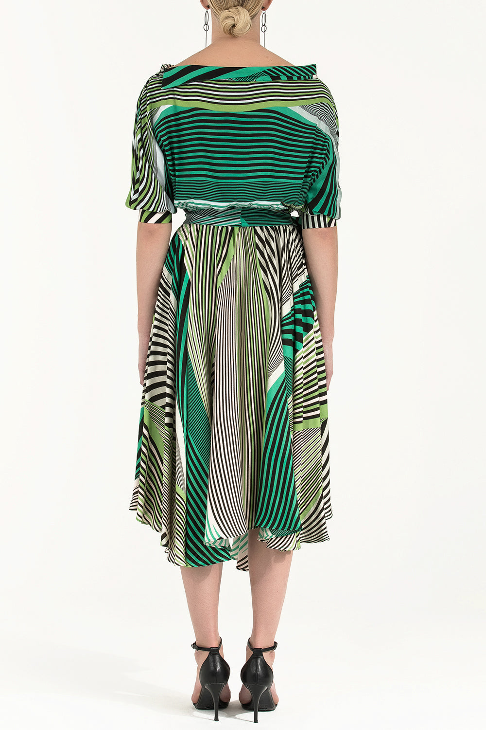 Yeşil Asimetrik düşük omuz midi elbise 92271