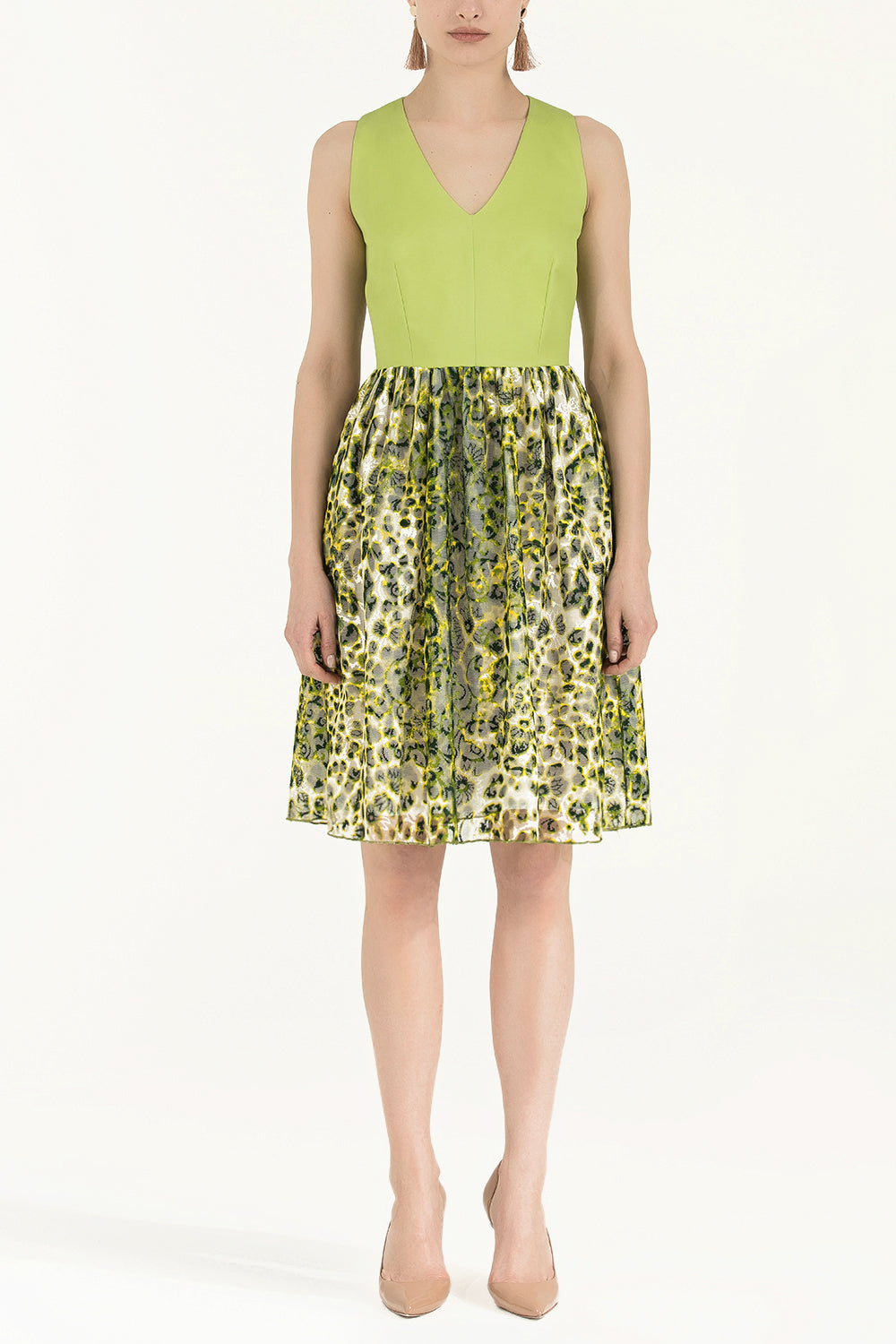Yeşil Dantelli V yaka pamuk mini elbise 91843